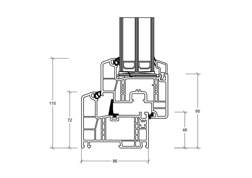 - Üçlü ısıcam uygulaması için 66 mm geniş cam boşluğu