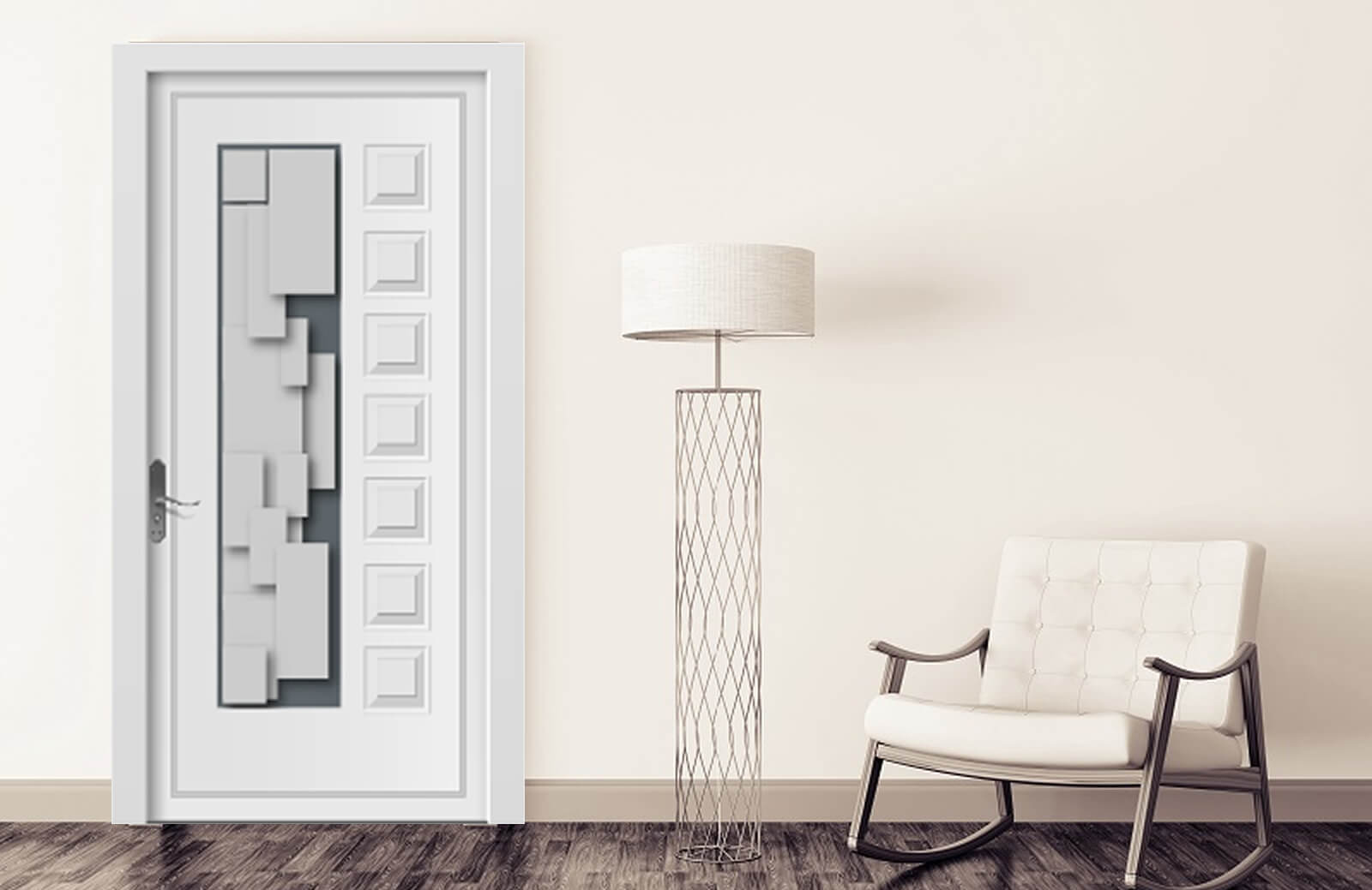 - PVC ya da Alüminyum levha dış yüzeyler arasında EPS dolgu malzemesi ve isteğe bağlı MDF takviyesi ile dekoratif kapı panelleri oluşuturulur.