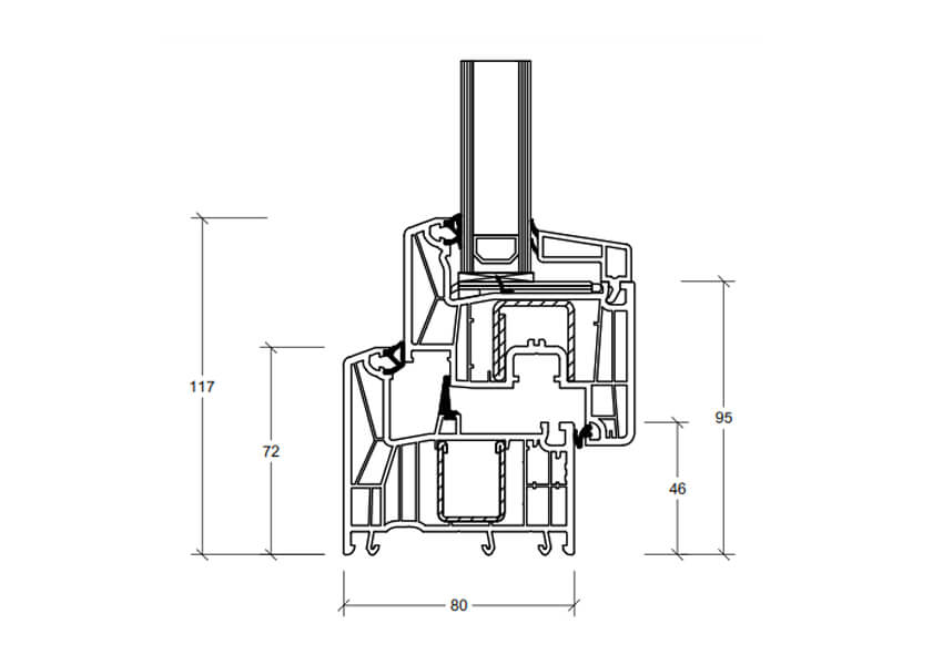 Fazladan ısı yalıtımı için köşe profilinde orta conta opsiyonu ile standart pencerelere göre neredeyse iki kat yakıt tasarrufu sağlar.